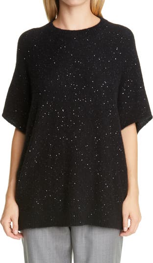 Shimmering sequins scatter like tiny bubbles across this cozy, cashmere-softened poncho that's perfect for layering.