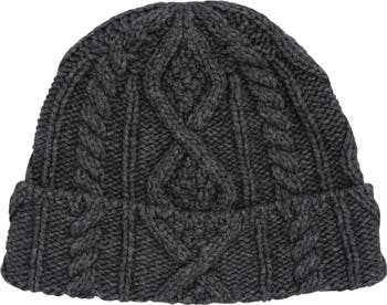 Knit with recycled fibers and hints of wool and cashmere, this chunky cable beanie serves cozy comfort in classic style.