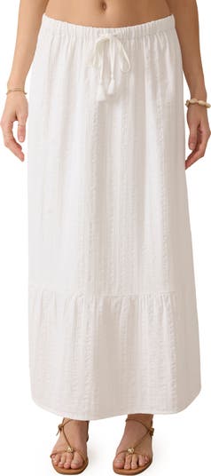 You'll be cool and comfortable no matter what the weather's doing in this drawstring maxi skirt made from soft organic-cotton gauze.