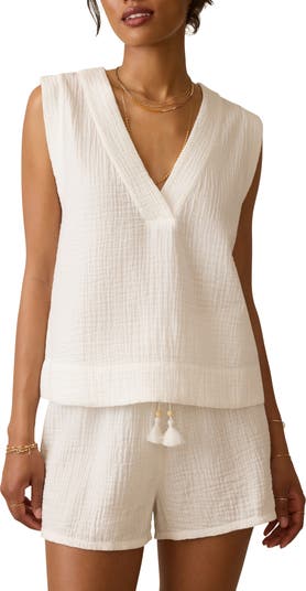 You'll be cool and comfortable no matter what the weather's doing, in this breezy popover top made from soft organic-cotton gauze.