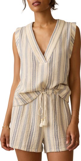 You'll be cool and comfortable no matter what the weather's doing, in this breezy popover top made from soft, striped organic-cotton gauze.