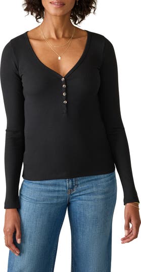 A V-neck looks fetching in this trim-fitting henley made from a stretch-added cotton and modal rib-knit.