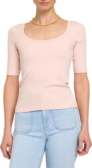 • True Religion Rose Lettuce Edge Ribbed Crop T-Shirt