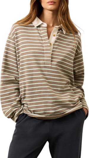 Channel classic rugby style with this boldly striped organic-cotton shirt. Featuring drop shoulders and long sleeves, it offers a relaxed fit perfect for casual days.