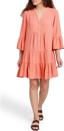 The grab-and-go mini is cut from gauzy cotton with flouncy cuffs and a tiered skirt.