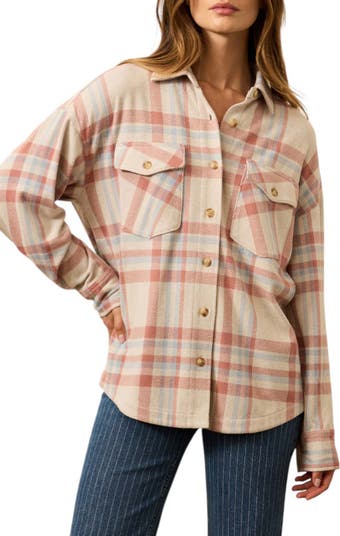 Cozy up by the campfire in this brushed plaid shirt framed by dropped shoulders for a relaxed fit.
