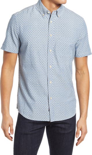A sharp print adds visual texture to a charming shirt cut from crisp cotton.