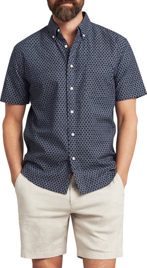 A sharp print adds visual texture to a charming shirt cut from crisp cotton.