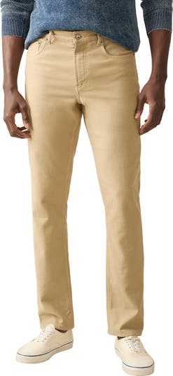 Enjoy the look of denim and the comfort of sweats with these stretchy terry pants featuring slim-cut straight legs and casual five-pocket styling.