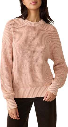Knit in a chunky shaker stitch, this organic-cotton fisherman sweater features a slouchy profile and a sun-faded hue, making it ideal for chilly off-duty days.