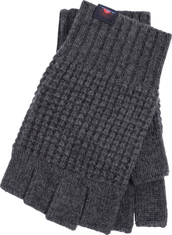 Superfine merino wool warms these cozy gloves in a versatile fingerless design patterned with a playful waffle stitch.