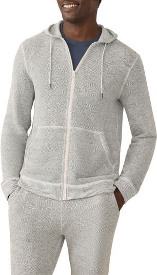 The classic zip hoodie gets a subtl upgrade in a cotton-blend French terry that's soft and loopy outside with a natty herringbone pattern outside.