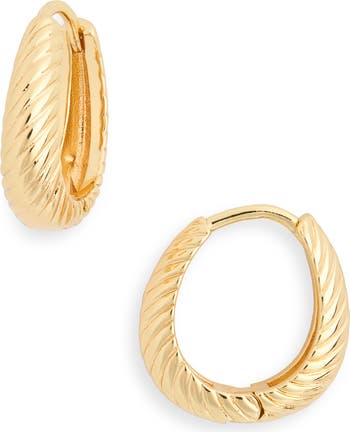 A twisted finish elevates dainty oval huggie hoop earrings that bring just-right shine to any outfit.