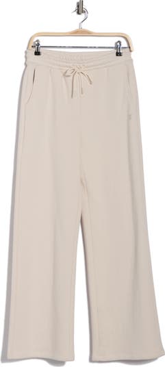 Kick back for the weekend in these comfy fleece sweatpants fashioned in a wide-leg silhouette and perfected with handy pockets.