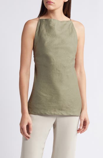 This sophisticated sleeveless top is crafted from crisp linen and punctuated with slender crossback straps.
