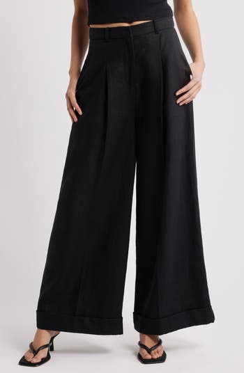 A superwide leg silhouette adds extra grace to pleated pants cut from easy, breezy linen.