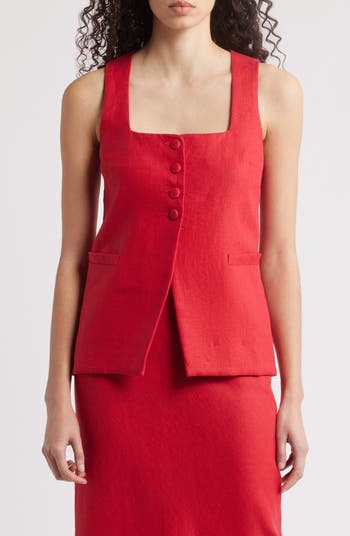 Vests are topping the trend report right now, and a siren-shaded version cut from airy linen is a winning way to wear the look.