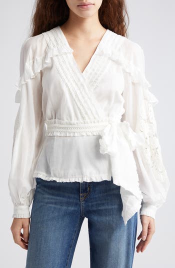 Joyousness abounds in a ruffle-decked cotton top lilted with lace and brimming with rows of cheerful rickrack.
