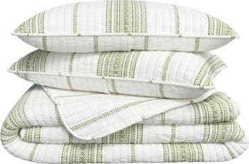 Channel quilting and a striped print add understated texture and sophistication to a quilt-and-sham set that's a perfect way to refresh your bedroom decor.