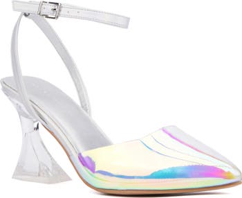 A tinted, transparent toe and matching flared heel boost the cool-girl vibes of these party-perfect ankle strap pumps.