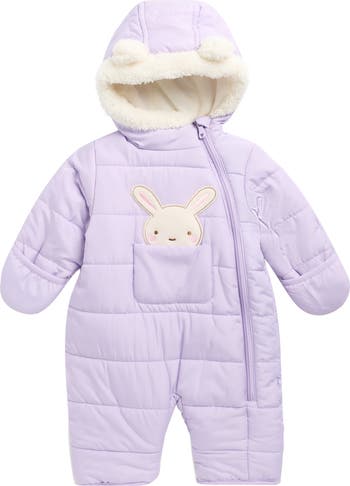 Keep your cutie extra cozy when the temp drops in this adorable quilted pram trimmed with faux fur.