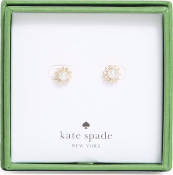 Glittering crystals surrounding lustrous faux pearl centers brings a floral effect to these sweet stud earrings.