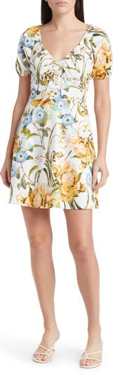 The sweetness of a summery day animates this flower-filled dress cut to a leggy length from stretch-kissed cotton.