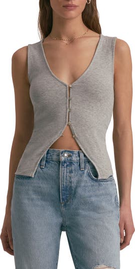 A vest-inspired silhouette shapes this sleeveless top made from a lightweight rib and finished with a cutaway hem for a piece that brings polish to any look.