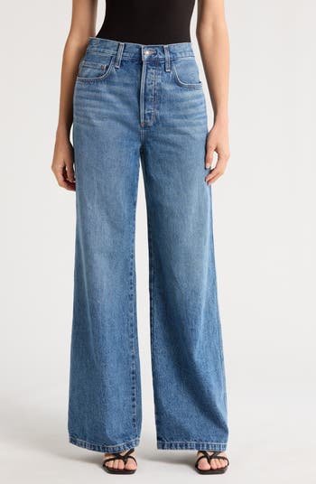 A faded indigo wash adds to the visually elongating look of floor-sweeping wide-leg jeans cut from nonstretch denim.