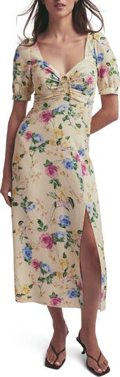 Bring the garden to the party in this flower-filled dress cut to a beloved midi length and topped with the sweetest of necklines.