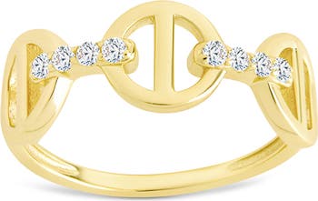 A trio of chain links accents this slender ring encrusted with cubic zirconia stones and made from a high-shine polish finish.