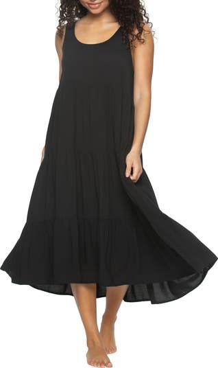 Before you slip in between the sheets, slip on this tiered nightgown that transforms your nights into a serene escape thanks to the soft, floaty challis fabric.