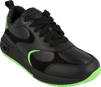 Show off sporty style with this heritage-inspired leather sneaker boasting color-pop overlays and a bold contrast sole.