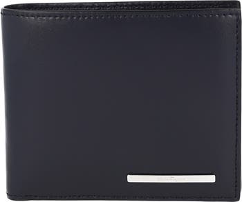 Polished hardware with a dainty scripted logo distinguishes this everyday bifold that's shaped from Italian leather.