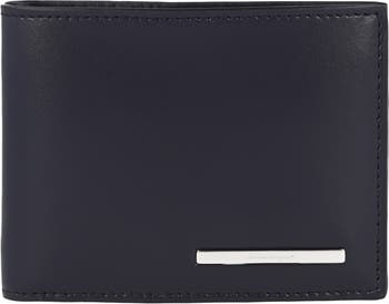 Polished hardware with a dainty scripted logo distinguishes this everyday bifold that's shaped from Italian leather.