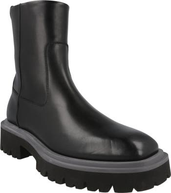 A toothy lug sole updates this streamlined ankle boot made from rich Italian-calfskin leather.