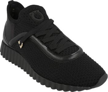 Soft laces glide easily through gancini-shaped hardware of a streetwise sneaker furnished with a breathable knit design and scallop-edge grip sole for traction.