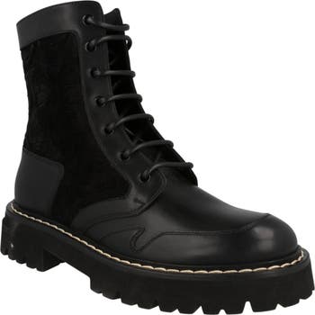 Ground your look in the utilitarian attitude of a lace-up combat boot crafted from fine Italian leather and set on a sturdy lug sole.