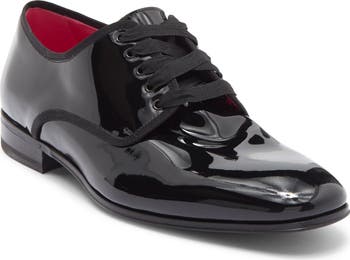 Smooth Italian calfskin leather in a glossy finish refines this versatile derby updated with ribbon-like laces.