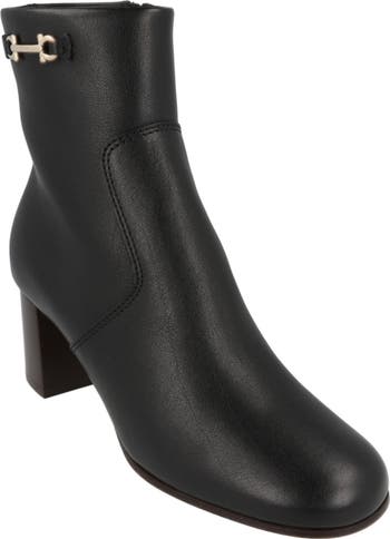 Gancio bit hardware brings signature Ferragamo flair to an ankle boot crafted from fine Italian-calfskin leather.