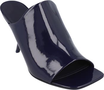 The brand's meticulous Italian craftsmanship distinguishes this calfskin-leather slide sandal framed with a sharp square toe and slender heel.
