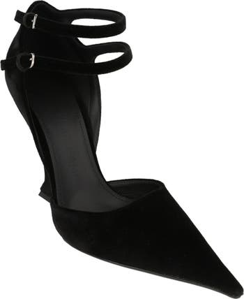 An elongated pointed toe and sculpted wedge heel deliver an unmatched fashion moment in these Italian-made pumps finished with two svelte ankle straps.