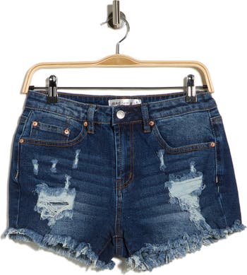 Frayed, ripped hems bring laid-back style to these perfectly faded denim shorts that are perfect for sunny weekends.