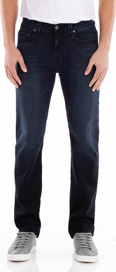 A sophisticated dark wash with tonal stitching makes these stretchy, slim-cut straight-leg jeans a sharp look for day or night.