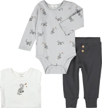 Curious raccoons frolic in the falling leaves on this long-sleeve bodysuit paired with ribbed joggers for a lightweight, comfortable outfit perfect for a day of play. The adorable look even comes with a spare coordinating bodysuit you can stash in the diaper bag for emergency outfit changes.