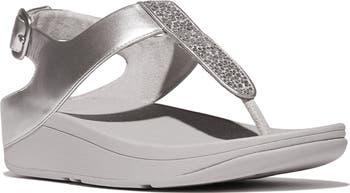 Shimmering rhinestones accent the T-strap vamp of this cushioned sandal set on a supportive wedge heel that keeps you stylish and comfortable on laid-back days.