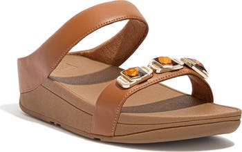 Pyramid studs add a glamorous finish to this leather slide sandal set on FitFlop's Microwobbleboard midsole for nonstop cushioning and support. A slip-resistant sole adds sure-footed traction to every step.