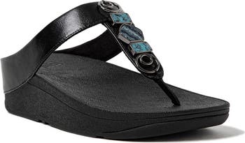 The classic flip-flop sandal gets an ergonomic update with a cushioned Microwobbleboard footbed, arch support and lifted sole while a trio of chunky resin stones bring an earthy finishing touch to your look.