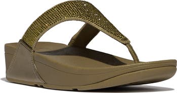 Greet the sun in style with this elevated flip-flop boasting a crystal-illuminated strap and a supercushioning, pressure-diffusing Microwobbleboard midsole. A slip-resistant sole keeps you surefooted with every step.