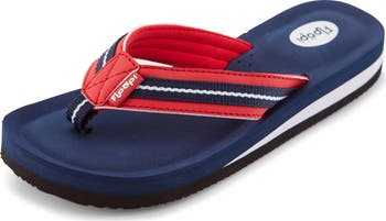 A slight wedge heel elevates a comfortable flip flop created with a cushioned heel and an arch supporting footbed.